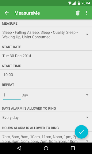 MeasureMe is a low friction personal measurement tool. It can be used to easily create a diary of subjective measurements such as pain, energy and sleep quality. Recorded measurements can be emailed as a csv file for spreadsheet analysis.Built in measurements for
