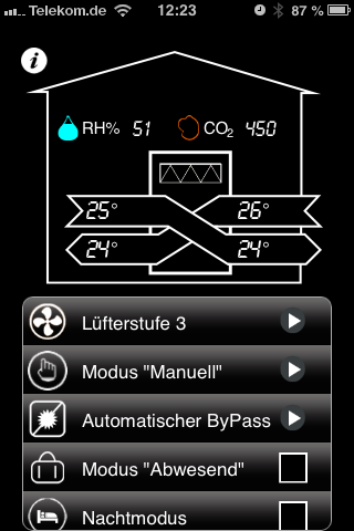 adjustment possibilities following provides iflow app plus: - regulation of the fan stages - selection of the weekly program - capitalized night mode - activation fire booster - activation moisture protection (holiday)