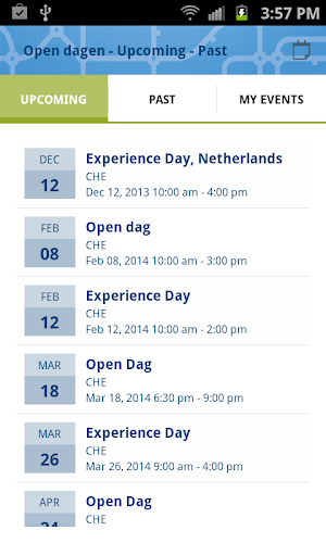 Dit is de officiële studiekeuze app van de Christelijke Hogeschool Ede (CHE). Bekijk de programmaonderdelen van de open dag, stel je eigen favoriete programma samen en deel met vrienden. Via de app kun je ook een studiekeuzetest maken.Daarnaast heb je gemakkelijk toegang tot de algemene informatie, ben je op de hoogte van het laatste nieuws en navigeer je snel tussen de verschillende opleidingen. Chat binnen de app, deel met je vrienden op Social Media en bereid je optimaal voor op je studiekeuze!