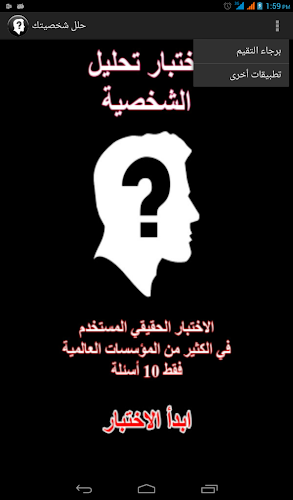 Android App Analysis and Review: Arabic speakers Personal Test - Know Yourself, Developed by N3raf. Listed in Social Category. Current Version Is 1.7, Updated On 20/05/2014 . According to users reviews on Google Play: Arabic speakers Personal Test - Know Yourself. Achieved Over 520 thousand Installs. Arabic speakers Personal Test - Know Yourself Currently Has 8 thousand Reviews, Average Rating 4.1 Stars