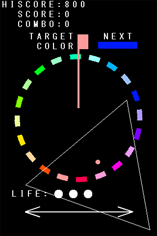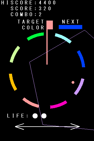 The ball which jumps about in the inside of a colorful ring.Rotate a ring by swipe, not to drop a ball, hit against the target color and aim at a high score!