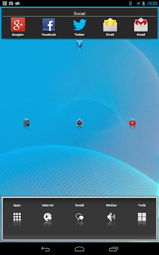 This is a template for Lightning Launcher. Please install either Lightning Launcher or Lightning Launcher eXtreme to use this theme (minimum version : 8.7).This is a simple template using folders with a sliding animation. Each time you tap on a category icon at the bottom of the screen, the current folder slides from left to right, replacing the previous one if any.
