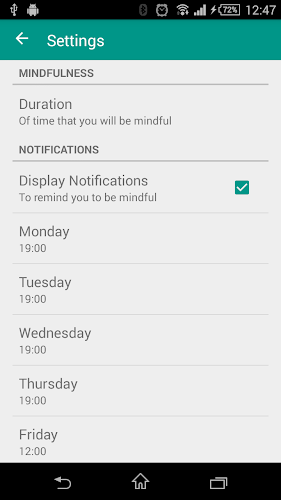 While being mindful, you can leave your phone - if the screen turns off it doesn't matter, an alarm will let you know when the mindful time is up. You can change the amount of time you want to be mindful for - the default is 2 minutes. You can also change when (or if) you want to be reminded about being mindful.