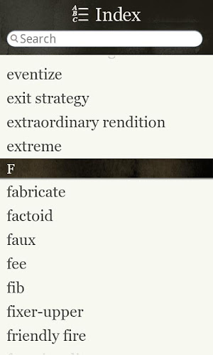 ▸ You can also search words by using the alphabetical scroll bar at the bottom of the screen.
