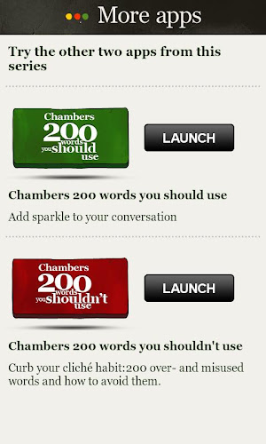 Android App Analysis and Review: Chambers 200 Words–Don’t Trust, Developed by Trellisys.net. Listed in Books & reference Category. Current Version Is 1.4, Updated On 27/06/2012 . According to users reviews on Google Play: Chambers 200 Words–Don’t Trust. Achieved Over 50 Installs. Chambers 200 Words–Don’t Trust Currently Has 5 Reviews, Average Rating 4.2 Stars