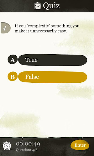▸ Once you’ve gone through the words you feel you need to study, try taking the quiz. The quiz challenges you with a completely random set of questions each time you take it, so you should be able to test yourself several times.