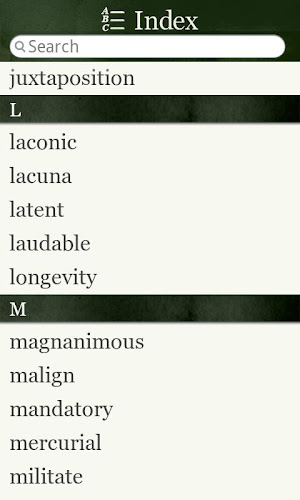 ▸ If you prefer to go through the words more systematically, you can choose a word from the index and then simply flick from one word to the next.