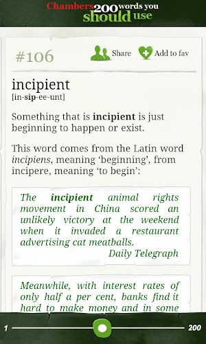 Android App Analysis and Review: Chambers 200 Words-Should Use, Developed by Trellisys.net. Listed in Books & reference Category. Current Version Is 1.4, Updated On 27/06/2012 . According to users reviews on Google Play: Chambers 200 Words-Should Use. Achieved Over 100 Installs. Chambers 200 Words-Should Use Currently Has 14 Reviews, Average Rating 4.4 Stars