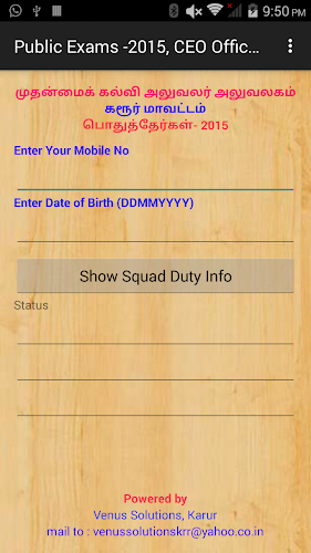 Android App Analysis and Review: Karur Exam Squad, Developed by Venus Solutions. Listed in Education Category. Current Version Is 1.0, Updated On 11/03/2015 . According to users reviews on Google Play: Karur Exam Squad. Achieved Over 100 Installs. Karur Exam Squad Currently Has 4 Reviews, Average Rating 5.0 Stars