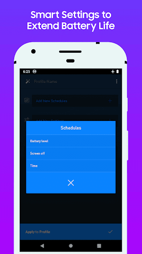 - Schedule profiles to turn on when your battery is low, or at a certain time.