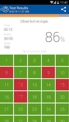 The test mode allows you to simulate a real test. This practice test is similar to the real thing and consists of randomly selected questions with the real time limit. Your result is displayed as soon as the test is over, so you can see immediately whether you would have passed or not. Furthermore, any questions you answered incorrectly are displayed together with the correct answers.