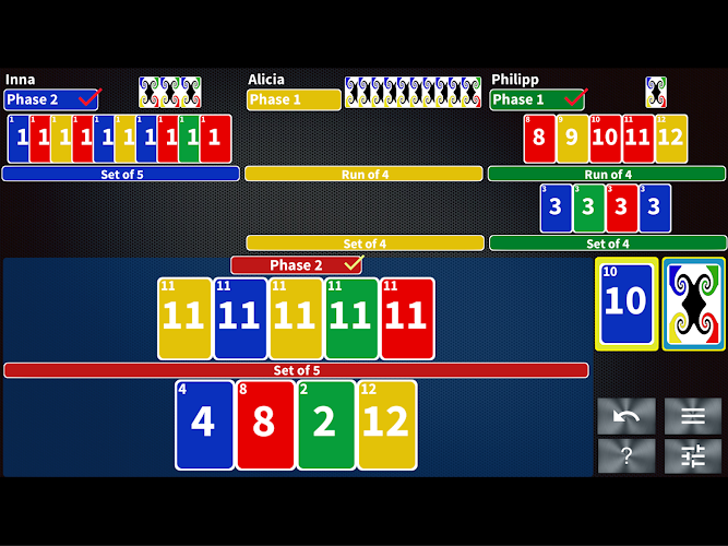 En forenklet versjon av Liverpool Rummy populært kortspill med 10 faser.