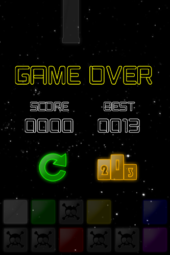 - Move the blocks around by touching until the correct color is aligned with the falling dot