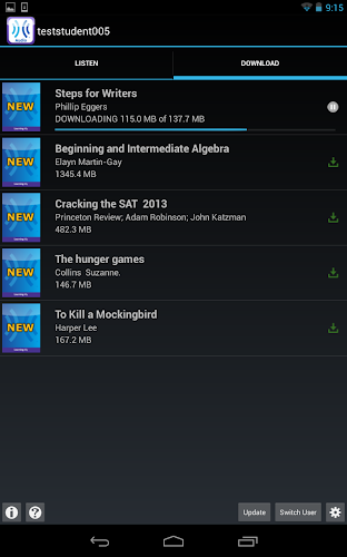 • Direct downloading: Download audiobooks from your Learning Ally account’s Bookshelf directly to your device