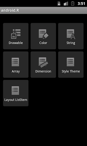 .R is a system resource viewer for Android developers.The following resources are supported.