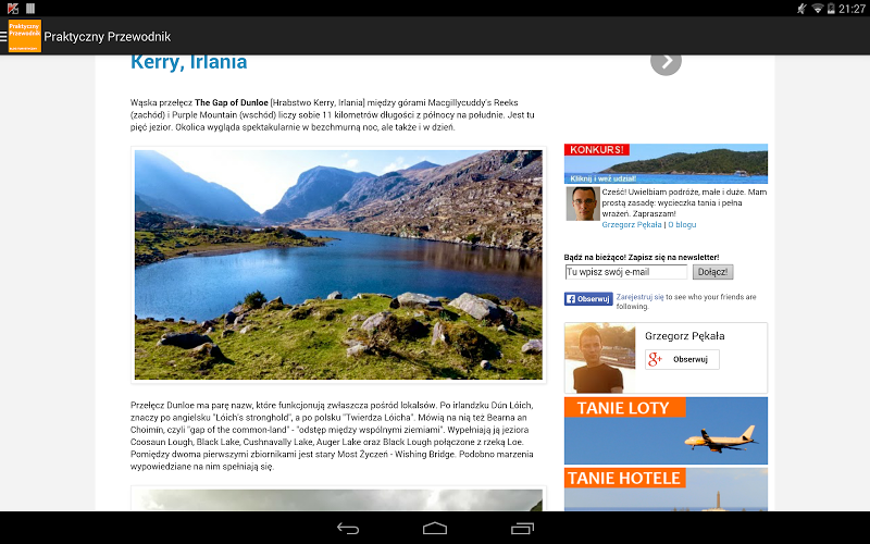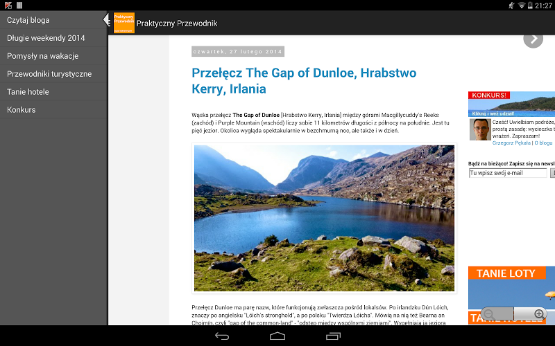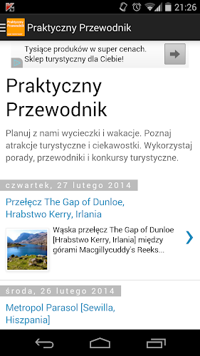 practical travel guide mobile application is one of the most popular travel blogs http: //praktycznyprzewodnik.blogspot.comjuż now thanks to the application you have on your smartphone and tablet latest tips and information from the tourist industry, plan interesting trips and cheap holidays.Search for attractive destinations to travel and meet interesting facts about the places where you want to go.