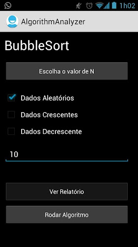 Aplicação criada para os algoritmos de análise bruta da Universidade Federal da ABC.Gera Relatório por tempo para cada tipo de algoritmo de classificação estudado, eles são: MergesortSelectionSortInsertionSortBubbleSortHorApsortQuickSorthá também é possível salvar o relatório gerado e a alteração de configurações para executar o algoritmo, por exemplo, o tamanho { #} vetor a ser organizado e sua ordem inicial (aleatória, aumentando, diminuindo).Atualmente, Estamos Oferecendo A Versão 1.0. Esta É A Nossa Versão Mais Recente E Mais Otimizada. É Adequado Para Muitos Dispositivos Diferentes. Download Gratuito Diretamente Apk Da Google Play Store Ou De Outras Versões Que Estamos Hospedando. Além Disso, Você Pode Baixar Sem Registro E Nenhum Login Necessário.