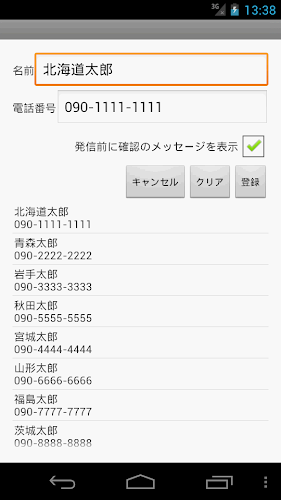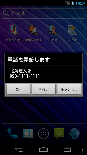 Chibiden é um aplicativo de discagem rápida que permite ligar para um número de telefone registrado com um toque. Para registrar um número de telefone, você pode inseri-lo diretamente na tela de configurações ou selecioná-lo na lista telefônica. Você também pode optar por exibir ou ocultar a mensagem de confirmação antes de fazer uma chamada. Este aplicativo possui várias versões com ícones diferentes para mulheres, homens e crianças.Este aplicativo não é um widget.