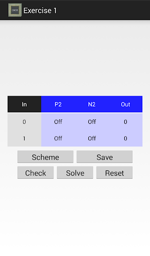 Пользователь может сохранить решения упражнений и отправлять их по электронной почте, чтобы приемник мог загружать их в приложении MOS Cicuits. Основное руководство (справка) для использования этого приложения включено.