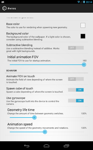 A minimalistic live wallpaper with tons of visual customization options. Get that old-school feeling as wireframe objects float across your home screen!Features highlights in full version:
