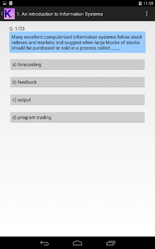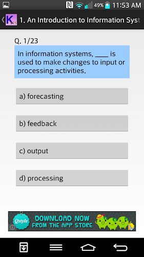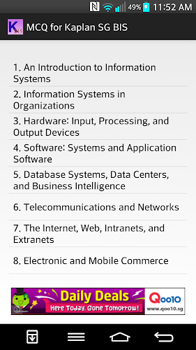 This is unofficial app for students taking Kaplan Singapore module Business Information Systems. Currently, there are 12 topics with 20+ MCQs each.It also has a CHALLENGE mode, have fun!