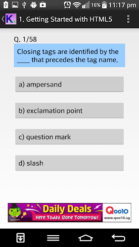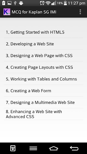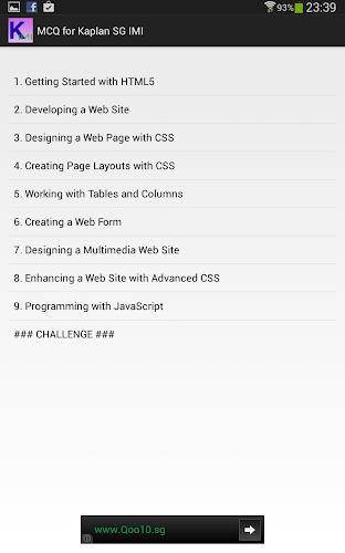 This is unofficial app for students taking Kaplan Singapore module ICT108 Introduction to Multimedia & the Internet (IMI). Currently, there are 9 topics with about 60 MCQs each.There is also a Challenge Mode ... enjoy!