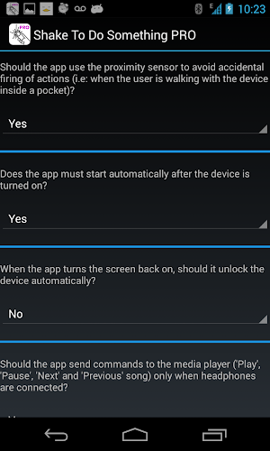 My main focus is on not draining the battery, and it won't. Let it run for a day and then check the app's battery consumption. It should be minimal (as opposed to other "Shake to do something" apps available on Google Play).