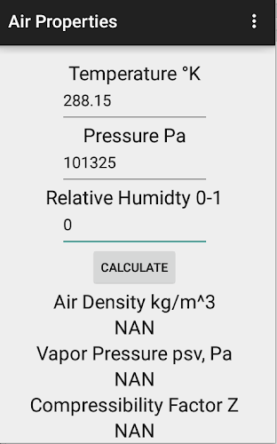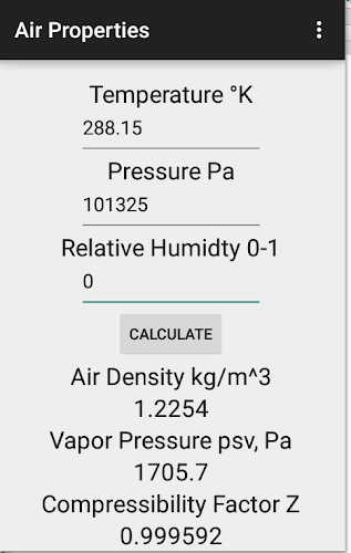 App för att beräkna Air densitet, ångtryck, Z, viskositet och Speed of Sound