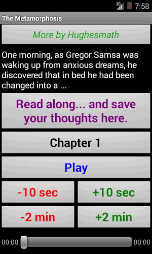 Android App Analysis and Review: The Metamorphosis audio/text, Developed by HughesMath. Listed in Music & audio Category. Current Version Is 1.0, Updated On 20/02/2014 . According to users reviews on Google Play: The Metamorphosis audio/text. Achieved Over 100 Installs. The Metamorphosis audio/text Currently Has 1 Reviews, Average Rating 5.0 Stars
