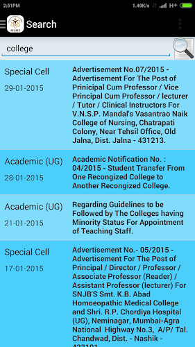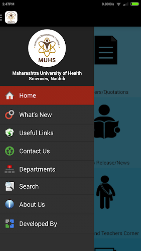 MUHS (Maharashtra Sağlık Bilimleri Üniversitesi) Android uygulaması, MUHS ailesinin ve diğer insanların mobil deneyimini geliştirmek için CSNS tarafından daha geniş bir girişimin bir parçasıdır. Bu uygulama, Android ürününde resmi web sitesinin görünümünü sunar. Uygulama, MUHS (Maharashtra Sağlık Bilimleri Üniversitesi) öğrencilere ve başvuru sahiplerine etkinlikler, kabul, sunulan kurslar vb. Hakkında tüm bilgileri sunmak için tasarlanmıştırMUHS'nin lisans, lisansüstü ve diğer derslere kabulü hakkında bilgi sağlar. Uygulama, kolejler, konumları, sınavları, program ve indirme formları ile ilgili bilgileri içerir.