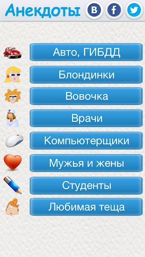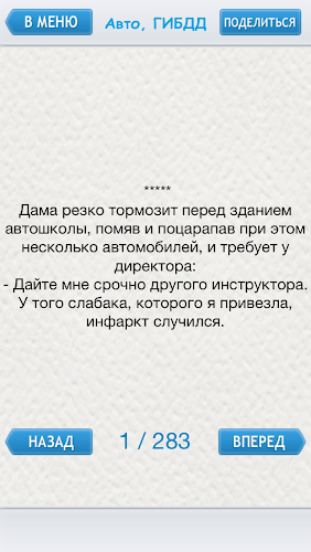 Тысячи отборных и потрясающих шуток, которые украсят ваш день! Ждете автобус?Стоите в очереди? Нечем заняться? Просто используйте это приложение, чтобы поднять себе настроение и заставить друзей смеяться. Программа работает без Интернета. На данный момент Программа содержит более 3000 анекдотов, которые размещены в 8 категориях.