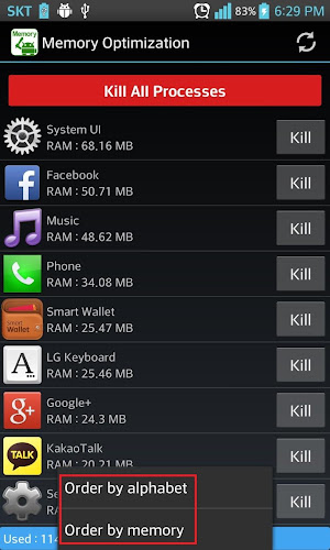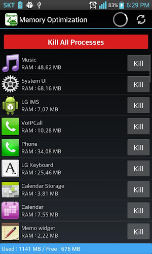 通过优化内存,您可以延长电池持续时间并加快智能手机的速度。与其他内存优化应用程序不同,所谓的过程杀手,“内存优化”显示了消耗内存空间的所有过程。