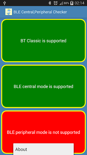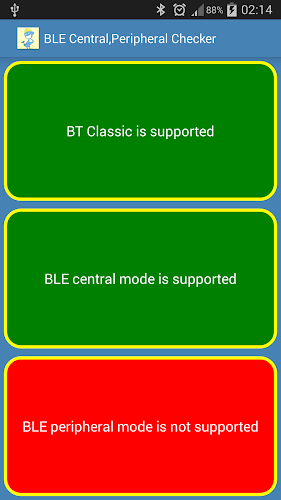 Android应用分析和审查:BLE Central,Peripheral Check,由Programonks开发。在工具类别中列出。当前版本为1.5,在 24/07/2016 上更新。根据用户在Google Play上的评论:BLE Central,Peripheral Check。超过20 千的安装。 BLE Central,Peripheral Check目前有60评论,平均评分为4.6星