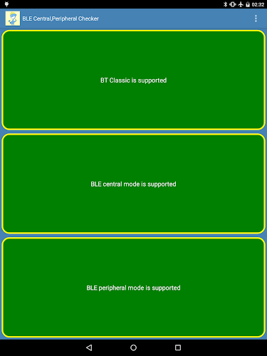 --> ble 外设模式仅支持 Android Lollipop 及更高版本,但并非所有具有该功能的 Android 设备 lollipop 支持外设模式。