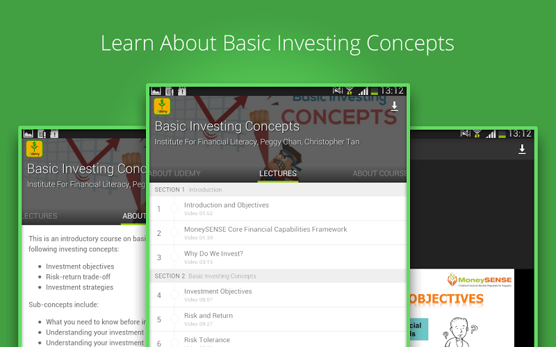 现在安装“基本投资概念”应用程序,并加入已经在Udemy上学习的400万学生。