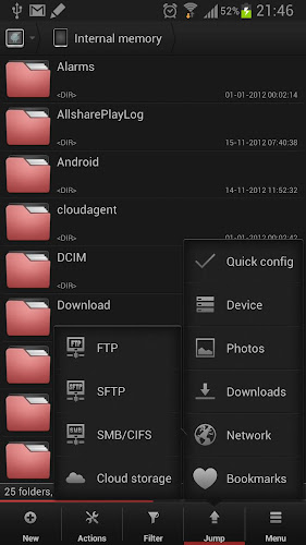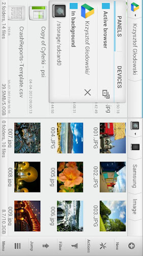 两个独立的面板允许使用拖放的无缝文件传输。只需将手指固定在文件上,然后将其拖到其他面板上即可。这样,您可以轻松地在包括PC共享,云和根文件夹在内的各个位置之间传输文件。