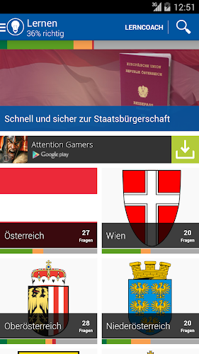 的所有問題都是針對所有想要成為奧地利公民的人提出的。這樣做的先決條件是,除其他事項外,要刪除“公民身份測試”,這需要了解民主秩序以及奧地利和各個聯邦國家的歷史。使用此應用程序,您現在可以選擇檢查已經獲得的知識作為“運動測試”的一部分。