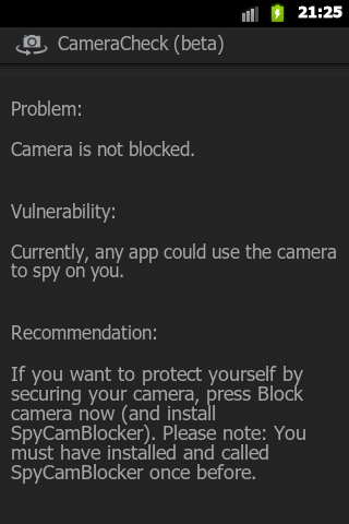 CameraCheck可以作為一個獨立的應用程序來檢查您的相機是否正在堵塞或不堵塞。
